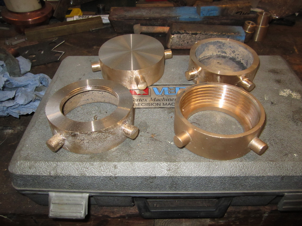 None of the pipe fittings survived, so replacements were made. Here are some of these at various stages of manufacture.