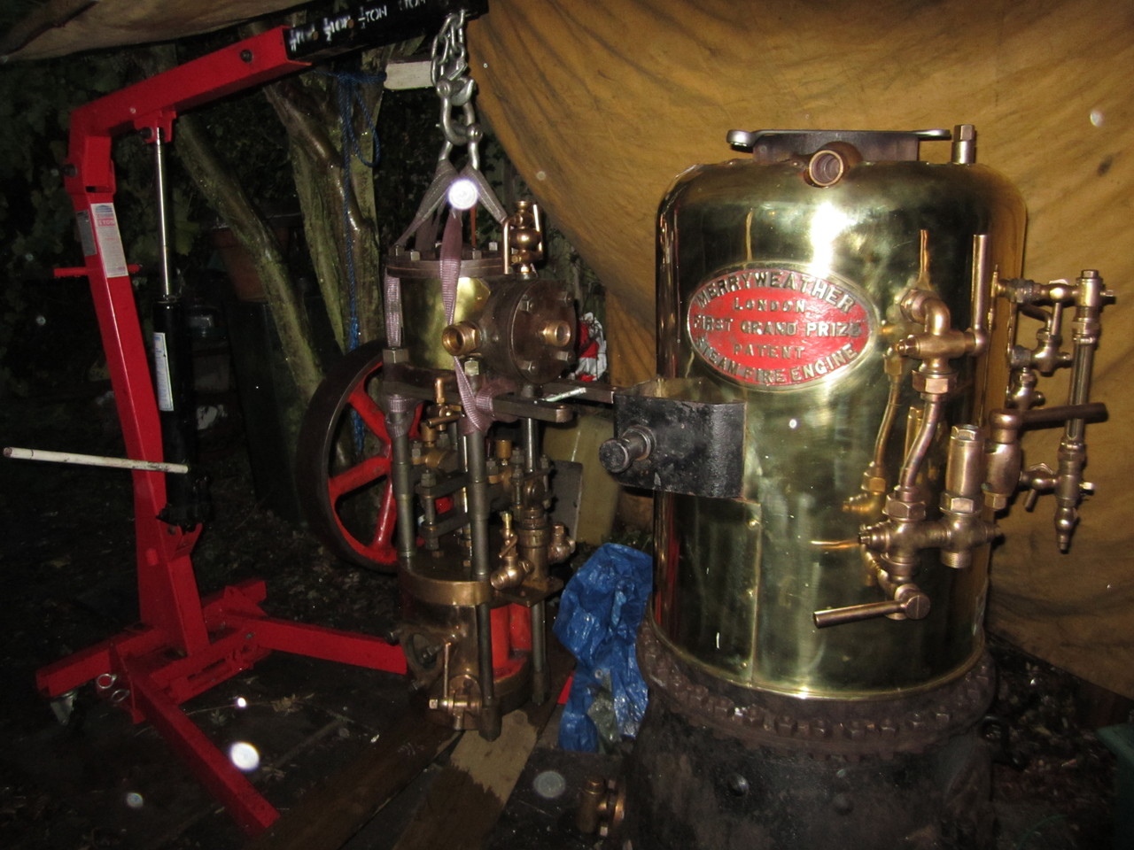 After the boiler's sucessful hydraulic and steam tests, carried out without the brass cladding in place, the pump & all fittings were removed from the boiler, the cladding and fittings replaced & the pump refitted.